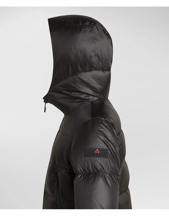 Piumino lungo della linea Color in nylon leggero con armatura ripstop, lucido e resistente allo strappo.
