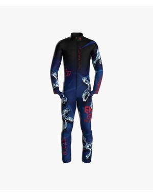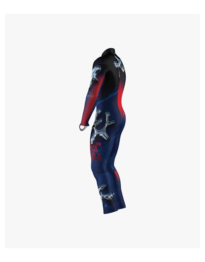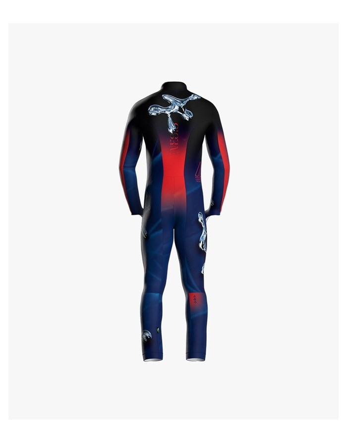 Il modello della tuta è stato studiato pensando alle posizioni che l'atleta assume in gara, garantendo un'ottima aderenza sul corpo, un'alta elasticità per dare la massima libertà di movimento in tutte le posizioni.