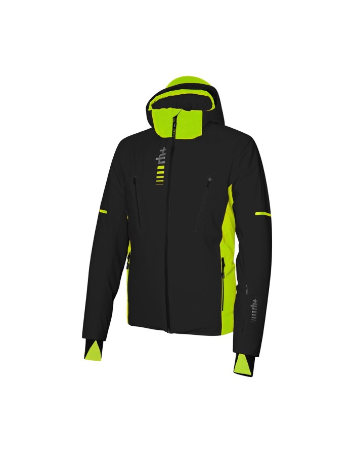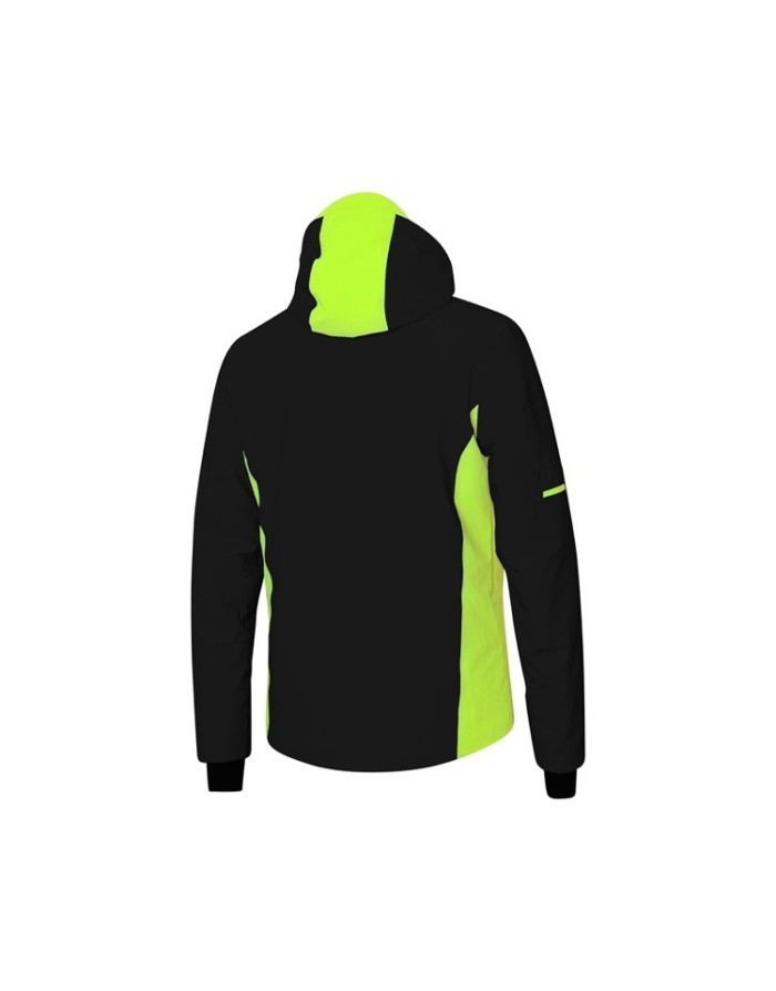 La giacca presenta dettagli come la fodera personalizzata, una ghetta interna fissa con elastico antiscivolo e tasche interne per cellulare e maschera.
