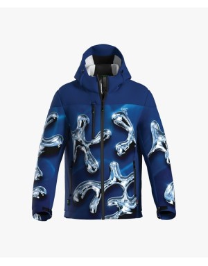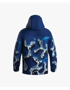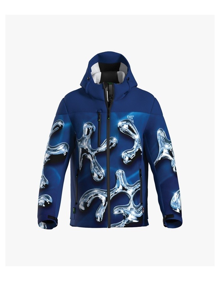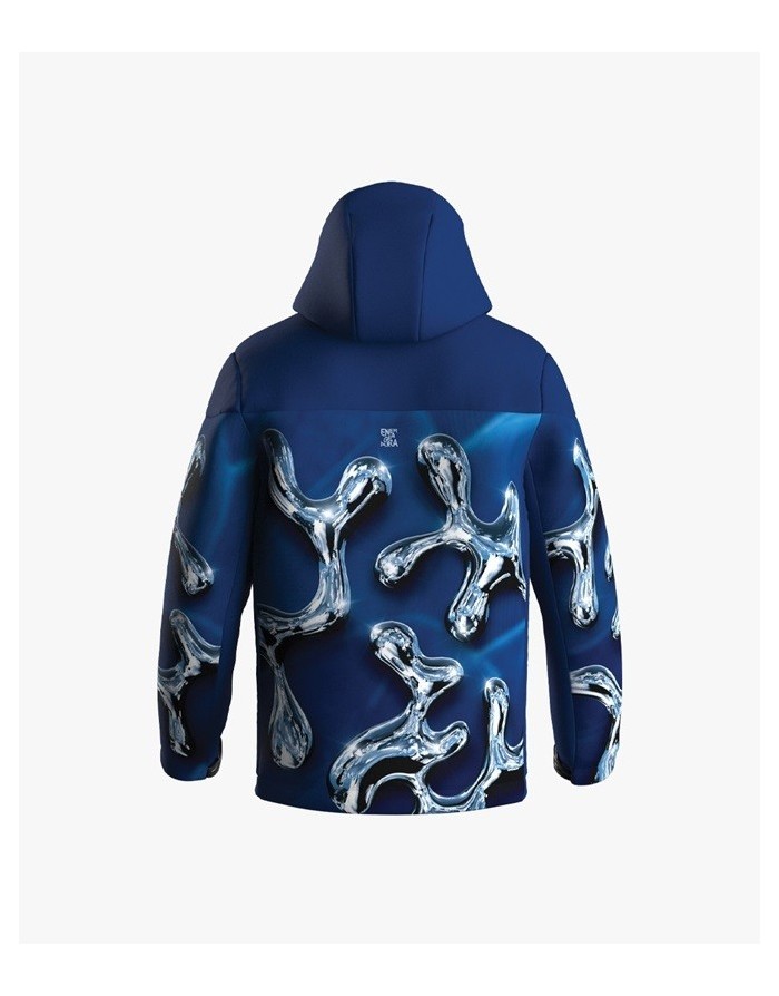 Giacca con cappuccio in RACETECH RICICLATO E RICICLABILE, colonna d’acqua 20.000 Mm in 24 h e traspirabilità 20.000 gr / mq in 24 h.