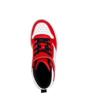 Mdello stringato di tendenza presenta una tomaia sintetica traforata liscia con soletta Air Cooled Memory Foam® e intersuola ammortizzata ad aria con tecnologia visibile Skech-Air®.